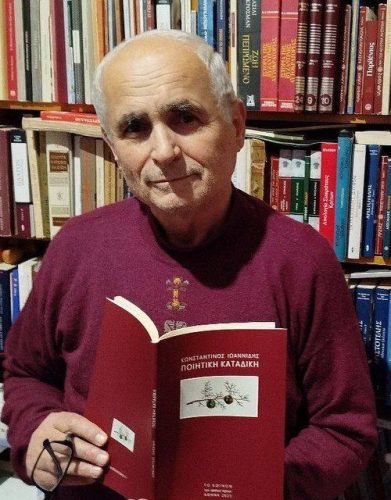 Ο Κωνσταντίνος Ιωαννίδης γεννήθηκε σε ένα μικρό χωριό του νομού Δράμας, στον Κάτω Θόλο Παρανεστίου, το 1951. Σπούδασε πολιτικές επιστήμες στο Πάντειο Πανεπιστήμιο και εργάστηκε στην Τοπική Αυτοδιοίκηση. Ποιήματα του δημοσιεύτηκαν σε λογοτεχνικά και ηλεκτρονικά περιοδικά. ΕΡΓΟΓΡΑΦΙΑ Ποιήματα-Ξεκίνημα (1970)Σουλουτσέχ (Η Οδύσσεια ενός Ποντίου) (1984)Ο Αλεξικέραυνος Λόγος (Δωδώνη 1992)Ερωτικό φορτίο (Τ.Ε.Δ.Κ. 1997)Φωτογραφίες Κάτω Θόλου (Όστρια,2019)Όλα συμβαίνουν …